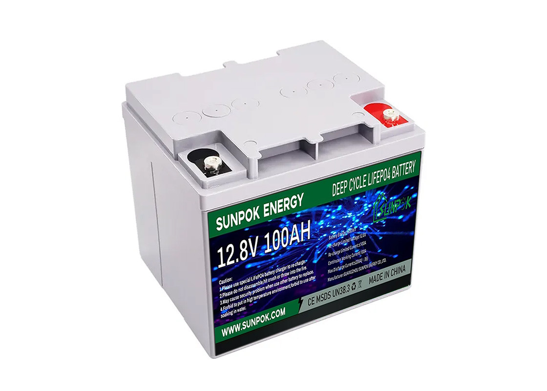 Sunpok 12 βαθιά μπαταρία κύκλων φωσφορικού άλατος σιδήρου λίθιου βολτ βολτ 24V, που σχεδιάζεται συγκεκριμένα για τις βαθιές όξινες μπαταρίες μολύβδου κύκλων με τα τυποποιημένα μεγέθη πακέτων BCI. Είναι κατάλληλο για τα περιβάλλοντα κατανάλωσης ισχύος όπως η αποθήκευση ηλιακής ενέργειας, η αποθήκευση αιολικής ενέργειας, το rv, τα γιοτ, και τα αργόστροφα οχήματα. Η ζωή υπηρεσιών είναι 5-8 φορές αυτή των lead-acid μπαταριών, και το βάρος είναι μόνο μισή αυτή των lead-acid μπαταριών. Ενσωματωμένο ευφυές BMS (σύστημα διαχείρισης μπαταριών), με το προηγμένο λογισμικό προστασίας, μπορεί πλήρως να προστατεύσει την ασφάλεια μπαταριών.