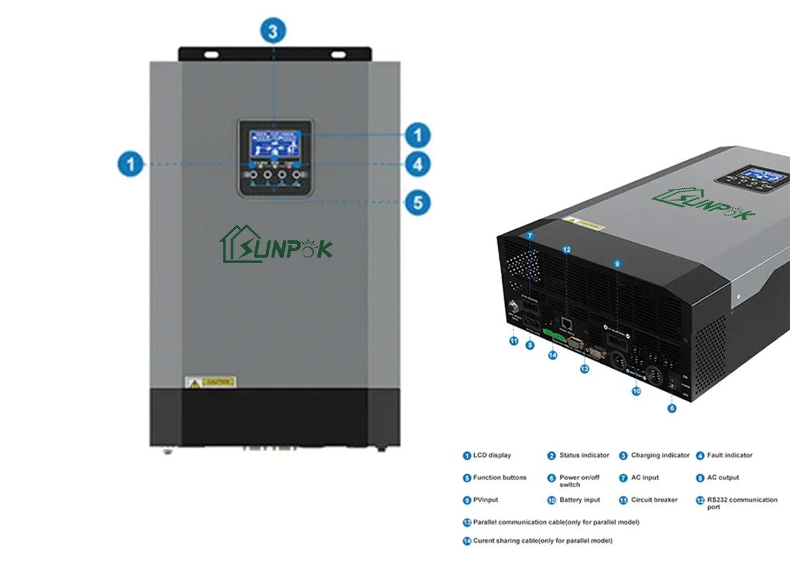 Ο μονοφασικός υψηλής συχνότητας αναστροφέας από-πλέγματος Sunpok 5Kw είναι κατάλληλος για τις περιοχές χωρίς δύναμη, τις νομαδικές περιοχές, τους σταθμούς βάσης επικοινωνίας, τις περιοχές με την ασταθή δύναμη, τα νησιά, τις συνοριακές θέσεις, τα φυσικά διοικητικά γραφεία, τα περίπτερα εφημερίδων, τα πακέτα μπαταριών για τους κατασκευαστές μπαταριών, κ.λπ. που εξοπλίζονται με την επίδειξη των οδηγήσεων, USB/RS232/RS485/Bluetooth/Dry-επαφή υποστηρίξεων, συμπαγές σχέδιο, και υψηλού κόστους απόδοση.